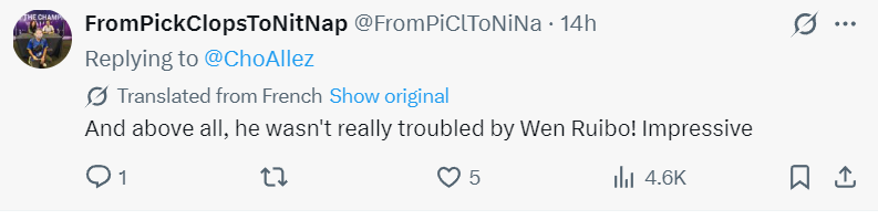 球迷:看到国乒男队有人崭露头角太令人兴奋了,我希望温瑞博能继续进步,也希望国乒越来越出色。